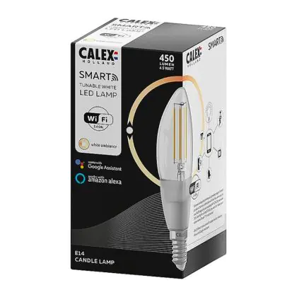 Calex Smart Tuya Wifi E14 Kaars Filament 4.5W 450lm - 818-830 Afstembaar Wit | Dimbaar - Vervangt 40W