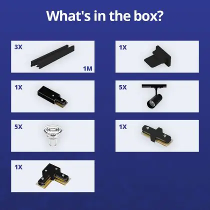 | Fabrikantnaam | Complete L shaped 1-Phase Track Set Black incl. 5x Spot fixture + GU10 2700K 3W Dim – 1 x 2 meter i | |