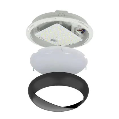 Noxion LED Bulkhead Pro V2 Wit 12/16/20W 2400lm - 830-840-865 CCT | 325mm - IP65 - Nood 3H + Ooglid Ring Zwart
