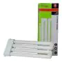 Bij (LED) spaarlampen bestaan er fittingen/lampvoeten met 2 pinnen of 4 pinnen. Kies altijd een spaarlamp met dezelfde lampvoet, anders past deze niet in het armatuur en werkt deze niet. Spaarlampen met een 2-pins fitting werken met een conventioneel voorschakelapparaat (EM) incl. starter. Spaarlampen met een 4-pins fitting werken met een elektronisch voorschakelapparaat (HF) zonder starter. |