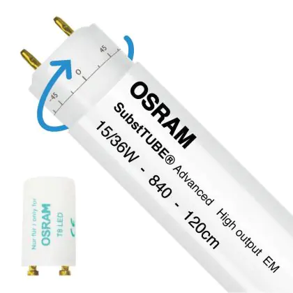 Osram LED Buis T8 SubstiTUBE Advanced (EM/Mains) Ultra Output 15W 2400lm - 840 Koel Wit | 120cm - Vervangt 36W